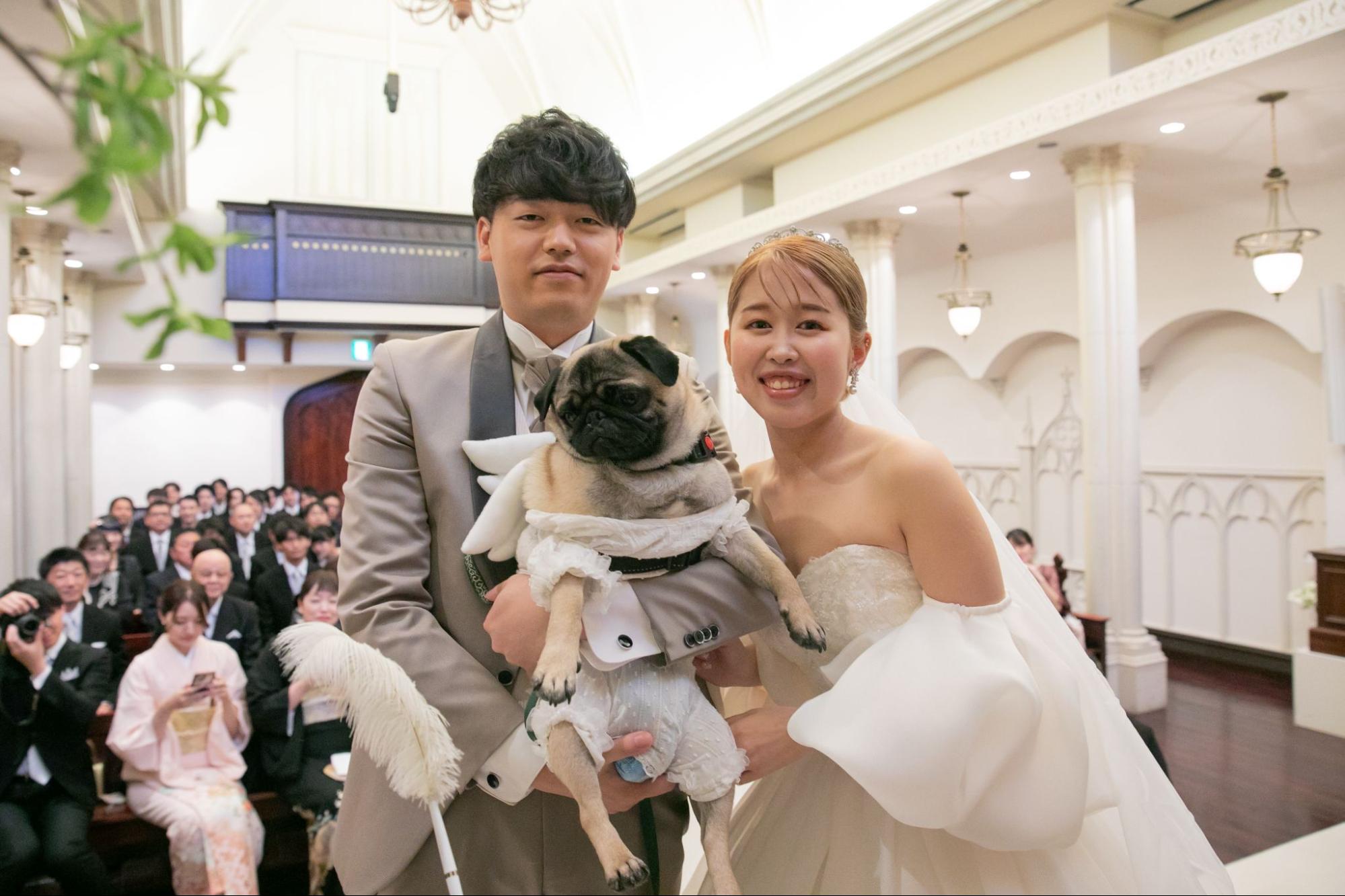 アイルマリー横浜では、ずっと側にいてくれる愛するペットも、かけがえのない家族として結婚式にご招待いただけます。チャペルでの誓いの瞬間も、華やかな披露宴も、いつもの笑顔で寄り添うペットの姿がお二人の思い出をより一層輝かせます。